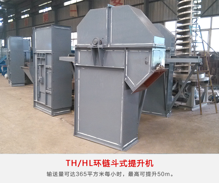 TH/HL環鏈斗式提升機牽引機構是兩根環形鏈條,為混合或重力方式卸料,掏取式裝料,輸送量可達365m³/h,最高可提升50m。