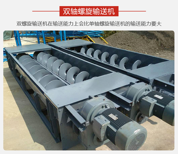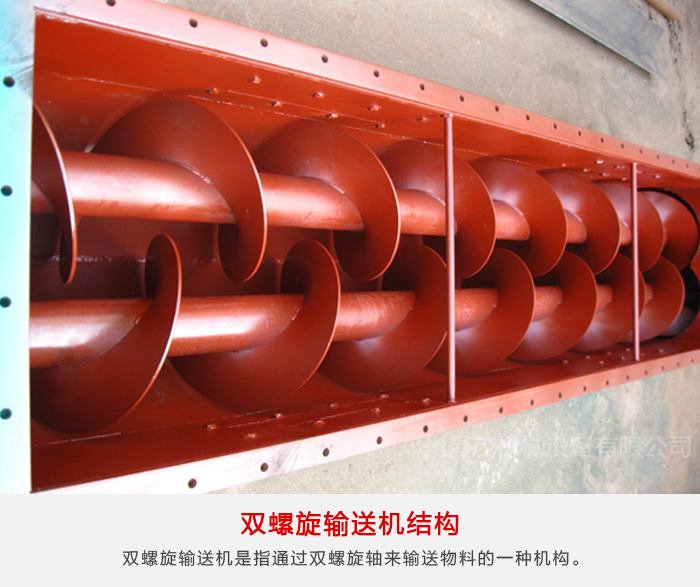 雙螺旋輸送機(jī),其是輸送機(jī)中的一種,而且,從某一方面來講的話,其是指通過雙螺旋軸來輸送物料的一種機(jī)構(gòu)。因此,其的工作原理,可以認(rèn)為是,擋板提升輸送機(jī),通過旋轉(zhuǎn)的螺旋葉片,來完成物料輸送這項(xiàng)工作的。