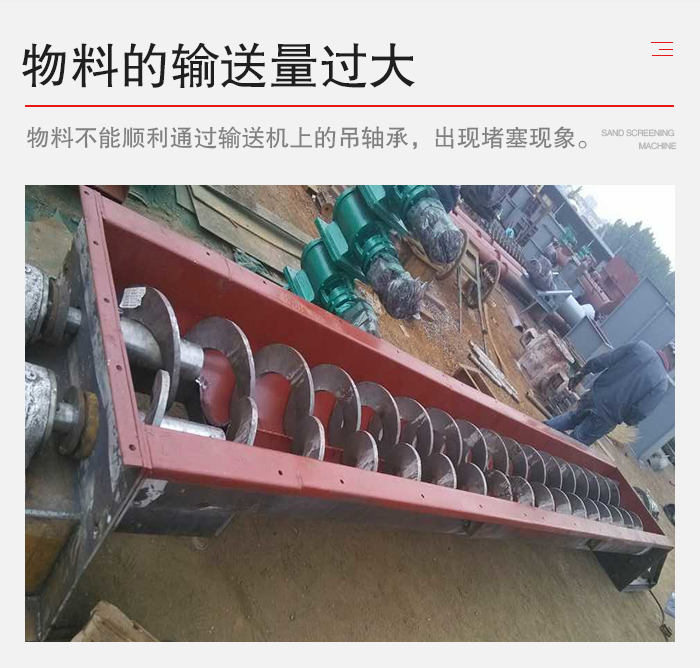 2、物料中雜物使螺旋吊軸承堵塞,處理方法是停機(jī)清除機(jī)內(nèi)雜物。
