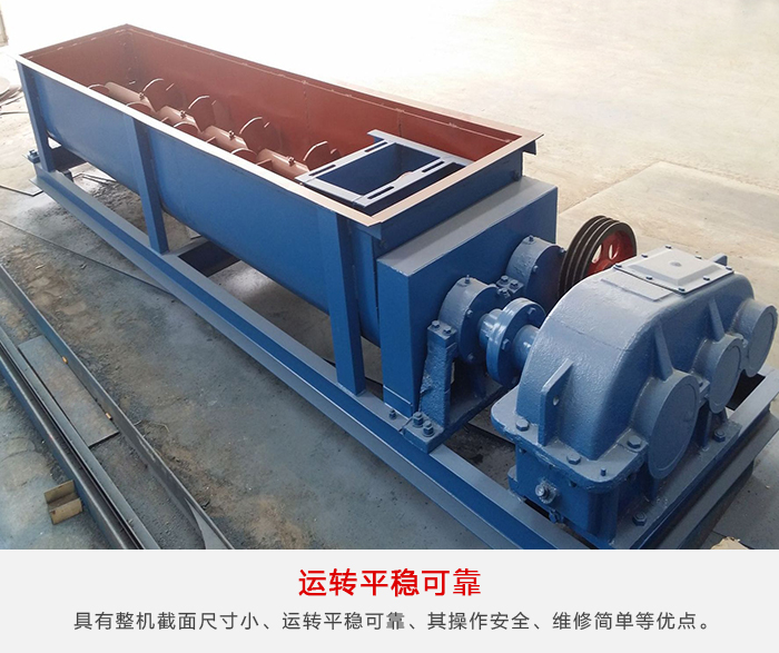 雙軸螺旋輸送機與其他輸送設備相比,具有整機截面尺寸小、運轉平穩可靠、密封性能好、可中間多點裝料和卸料其操作安全、維修簡單等優點。