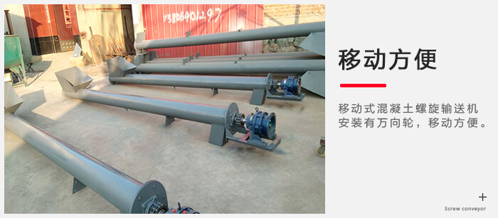 移動式混凝土螺旋輸送機安裝有萬向輪,移動方便