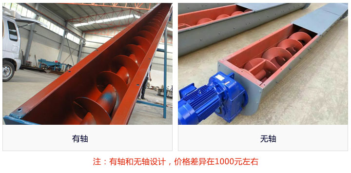 絞龍螺旋輸送機按物料屬性不同所使用的螺旋葉片不同可分有軸和無軸兩種,采用的設計理念也就不同,同種情況下,無軸的要比有軸的生產(chǎn)難度高,因此價格也會存在1000元左右的偏差。