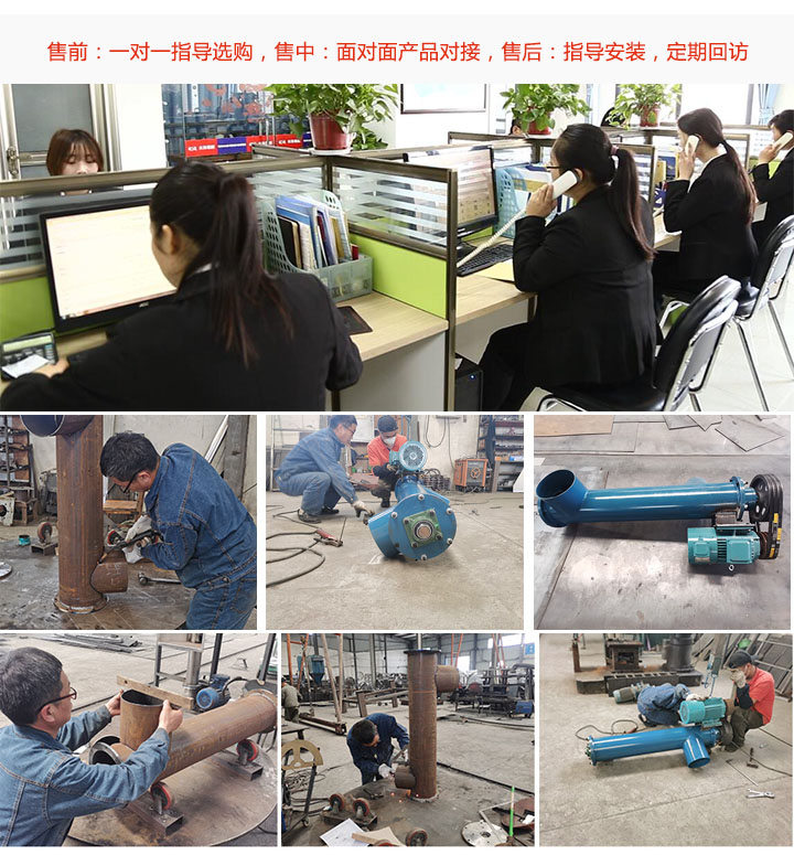 大漢垂直立式螺旋輸送機廠家采用線上,線下雙渠道賣貨,擁有專業的售前,售中,售后服務團隊,售前一對一指導選購,售中接用戶來廠參觀,專業技術人員與用戶對接需求;售后專人上門講解設備使用,指導安裝,定期回訪,售后記錄跟蹤。