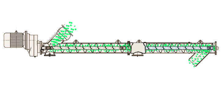 螺旋軸與水平面的夾角小于15°布置的LS螺旋輸送機。