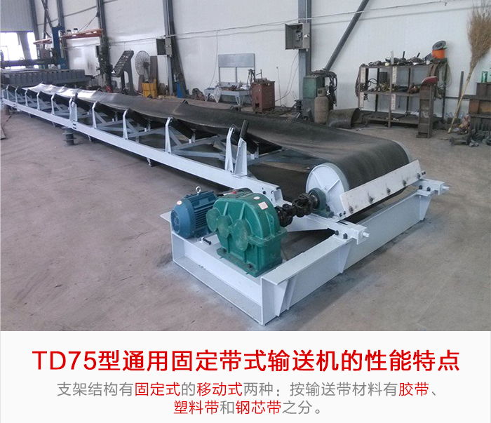 簡介:TD75型帶式輸送機按其支架結構有固定式的移動式兩種:按輸送帶材料有膠帶、塑料帶和鋼芯帶之分。