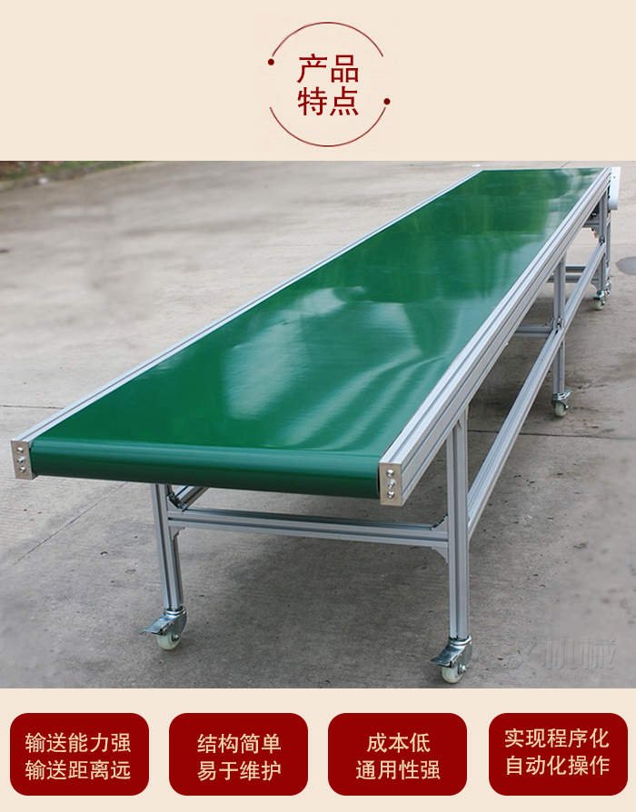 3,、此輸送機作業時,只需人工近身拖拽貨物便可完成作業,正轉上貨,反轉下貨,裝卸效率可達每分鐘30件貨左右。