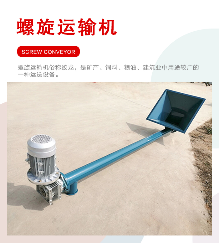 簡介:螺旋運輸機分為水平式螺旋運輸機和筆直式螺旋運輸機兩大類型