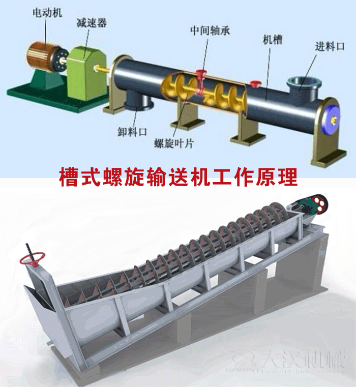 槽式螺旋輸送機俗稱絞龍,是礦產、飼料、糧油、建筑業中用途較廣的一種輸送機設備,從輸送物料位移方向的角度劃分,槽式螺旋輸送機分為水平式螺旋輸送機和垂直式螺旋輸送機兩大類型,主要用于對各種粉狀、顆粒狀和小塊狀等松散物料的水平輸送和垂直提升。