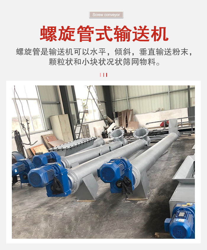 螺旋管是輸送機可以水平,傾斜,垂直輸送粉末,顆粒狀和小塊狀況狀篩網物料,廣泛用于糧食,建材,化工,機械制造,交通運輸業等行業。