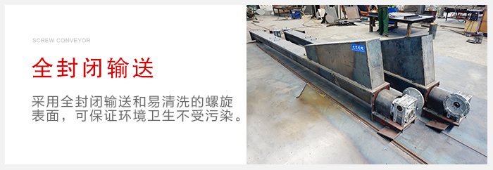 4、采用全封閉輸送和易清洗的螺旋表面,可保證環境衛生和所送物料不受污染、不泄漏。