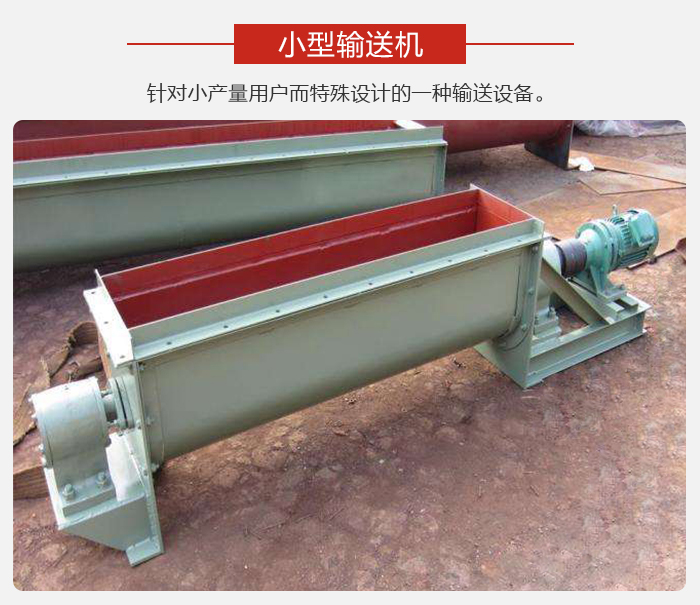 簡介:小型輸送機是新鄉(xiāng)大漢公司為了針對小產(chǎn)量用戶而特殊設(shè)計的一種輸送設(shè)備