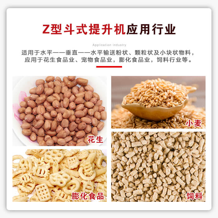 應用行業:適用于水平——垂直——水平輸送粉狀、顆粒狀及小塊狀物料,廣泛應用于花生食品業、寵物食品業,膨化食品業,飼料行業,糖果行業,干鮮果品業,保健食品業,糧食精加工處理業,化工醫藥業等。