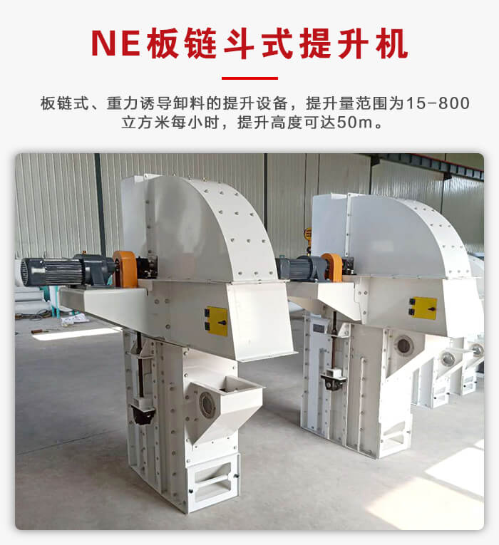 NE板鏈斗式提升機為板鏈式、重力誘導卸料的提升設備,該系列提升機具有NE15 ~ NE800多種規格。提升量范圍為15 ~ 800m3 /h,提升高度可達50m。