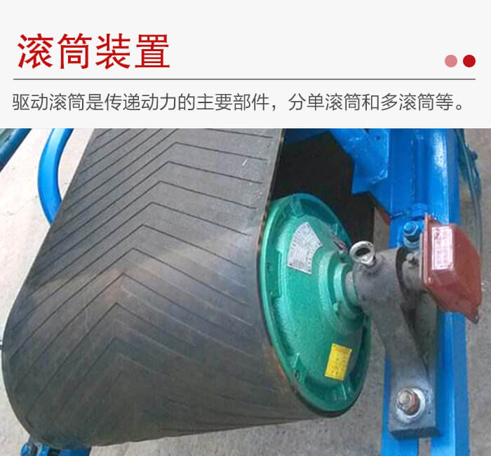 皮帶輸送機滾筒裝置分為驅動滾筒和改向滾筒。驅動滾筒是傳遞動力的主要部件,分單滾筒(膠帶對滾筒的包角為210°至230°)、雙滾筒(包角達350°)和多滾筒(用于大功率)等。